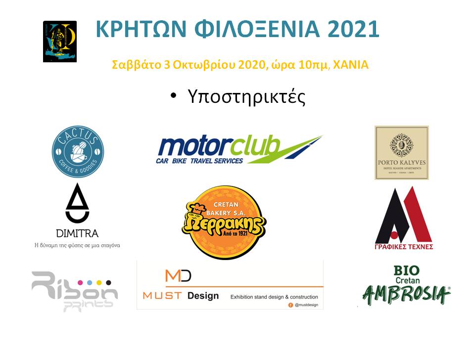 Ημερίδα Τουρισμού ΚΡΗΤΩΝ ΦΙΛΟΞΕΝΙΑ διοργανώνει το Σαββάτο 3 Οκτωβρίου 2020 και ώρα 10:30 πμ στα Χανιά στο Μεσογειακό Αγρονομικό Ινστιτούτο Χανίων – ΜΑΙΧ, Αίθουσα «Ποσειδών», το περιοδικό ΚΡΗΤΩΝ ΕΠΙΧΕΙΡΕΙΝ. Η Ημερίδα πραγματοποιείται υπό την Αιγίδα του Υπουργείου Τουρισμού και την Αιγίδα της Περιφέρειας Κρήτης.