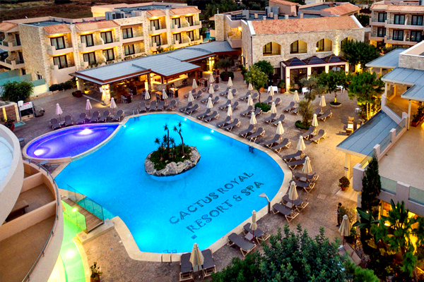 Σε μια περιοχή φυσικής ομορφιάς, στον παραλιακό δρόμο της Σταλίδας, δίπλα στην πιο διάσημη αμμώδη παραλία της περιοχής, το πεντάστερο θέρετρο Cactus Royal υψώνεται μεγαλοπρεπώς. Αυτό το λαμπερό κόσμημα εξαιρετικής διαμονής και φιλοξενίας, κομψά διακοσμημένο με πέτρινα και ξύλινα στοιχεία, το καθιστά αβίαστα ένα παράδειγμα εκλεκτής κρητικής αρχιτεκτονικής. Υπέροχα περιποιημένοι κήποι, το ζεστό φως του ήλιου και το βαθύ μπλε του Κρητικού Πελάγους συνδυάζουν ένα μοναδικό, γραφικό τοπίο. Τέσσερις ξεχωριστοί χώροι πισίνας (τρεις εξωτερικές και μία εσωτερική), γοητευτικές εσωτερικές και εξωτερικές τραπεζαρίες, κομψά μπαρ και καφετέριες, ένα σπα και μια φιλική ατμόσφαιρα είναι στη διάθεση των επισκεπτών και προσφέρονται από τις επιλογές διαμονής. Τοπικές και διεθνείς λιχουδιές, καθώς και οι παγκοσμίου φήμης υπηρεσίες κρητικής φιλοξενίας, προσθέτουν αίγλη στη διαμονή σας στο Cactus Royal.