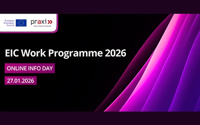 Το Δίκτυο ΠΡΑΞΗ, Εθνικό Σημείο Επαφής για το European Innovation Council (EIC), και ο Εκτελεστικός Οργανισμός για το Ευρωπαϊκό Συμβούλιο Καινοτομίας και τις ΜμΕ (EISMEA) σας προσκαλεί στη Διαδικτυακή Ημερίδα Ενημέρωσης για το Πρόγραμμα Εργασίας 2026, που θα πραγματοποιηθεί την Τρίτη 27 Ιανουαρίου 2026 (10.00πμ -12.30μμ ώρα Ελλάδος).
