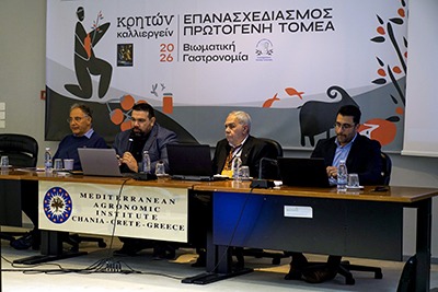Στο Συνεδριακό Κέντρο του Μεσογειακό Αγρονομικό Ινστιτούτο Χανίων (ΜΑΙΧ) το Σάββατο 28 Φεβρουαρίου 2026, επιστήμονες, ειδικοί και εκπρόσωποι φορέων συναντήθηκαν και αντάλλαξαν γνώσεις, εμπειρίες, σχεδιασμούς και προτάσεις που αφορούν και επιτρέπουν κινήσεις και δράσεις για τον Επανασχεδιασμό του Πρωτογενούς Τομέα σε συνάρτηση με τη Βιωματική Γαστρονομία, ώστε να αναδειχθεί ο ρόλος της Κρήτης ως πρότυπο αγροδιατροφικής καινοτομίας και γαστρονομικού πολιτισμού.